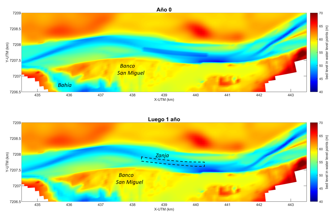 The Delft3D software was used to create a two-dimensional model representing pre-intervention conditions. This model was validated with available data and provides insights into historical morphological processes.